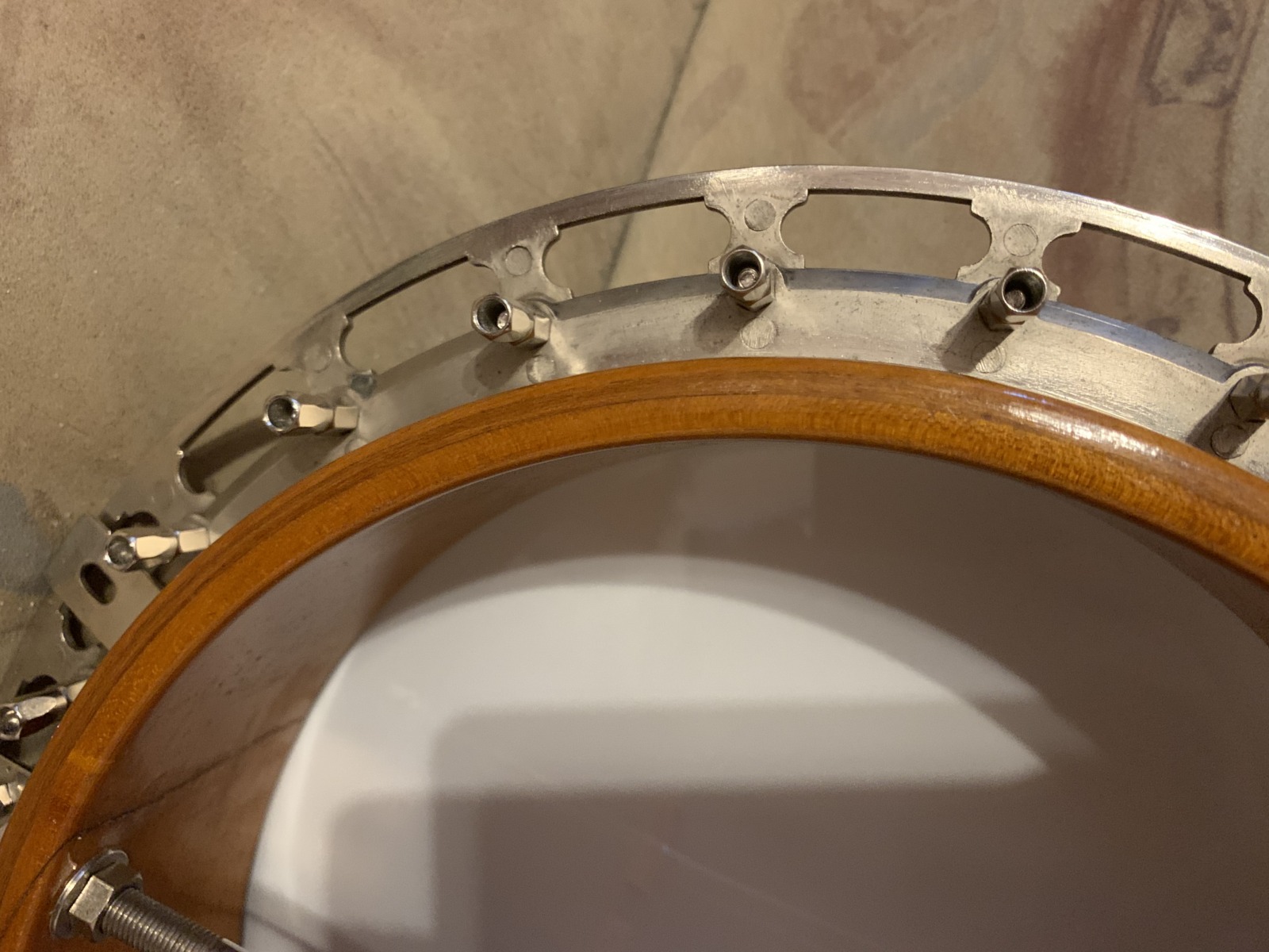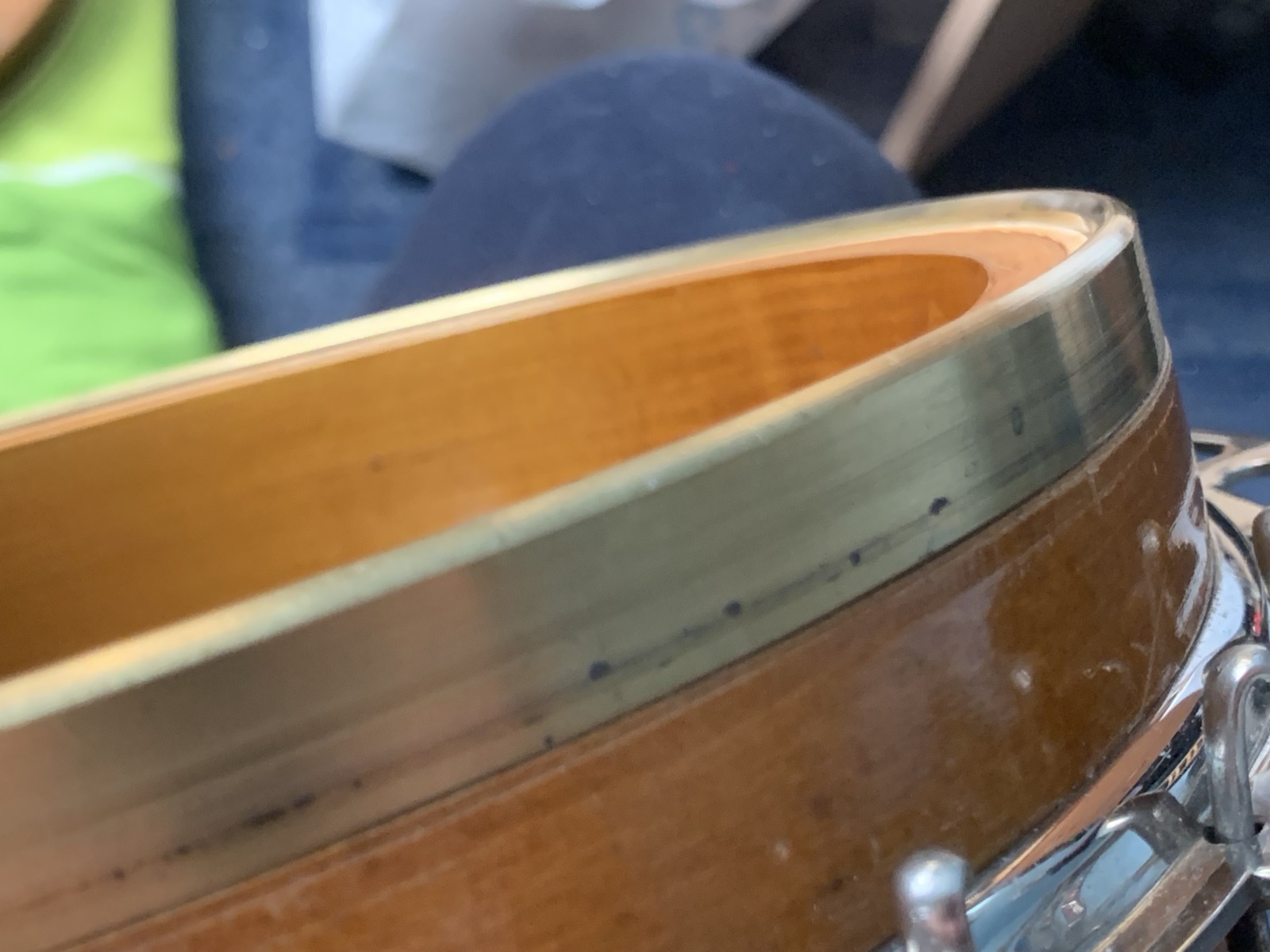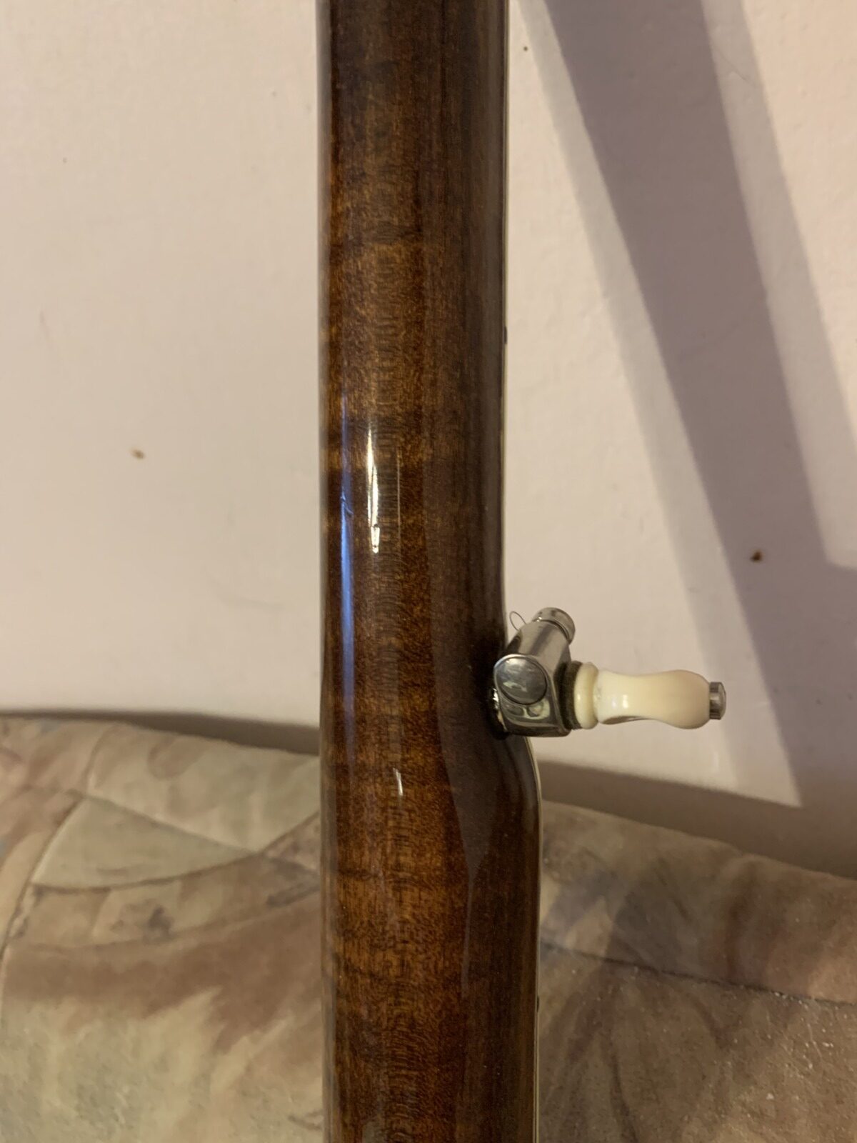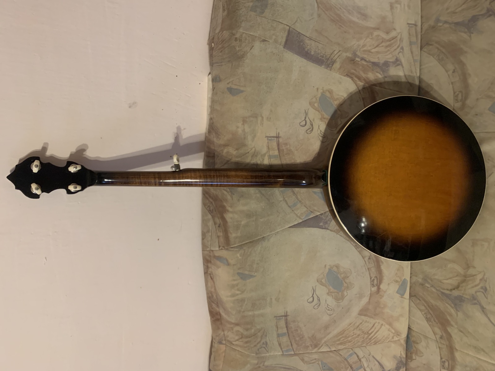 Nabízím k prodeji banjo Gibson RB-00. (Předválečná konverze). Původní přítlačný prstenec blány byl nahrazen modernějším od Zdeňka Roha, což přispělo k lepší stabilitě struníku. (Původní struník na úzkém přítlačném prstenci byl velmi nestabilní). Tonering je Rolled Brass Hoop / tone ring s krátkou“sukní“. (Viz foto). Můstek od Tima Purcella, struník Clamshell, Tvůrce krku je neznámý, ale velmi povedený! Vykládání krku klasické – Flying Eagle…Háčky pro pátou strunu na 7. a 9.  pražci. Blána je Remo Weather King. Ráfek resonátor a flange jsou původní.
